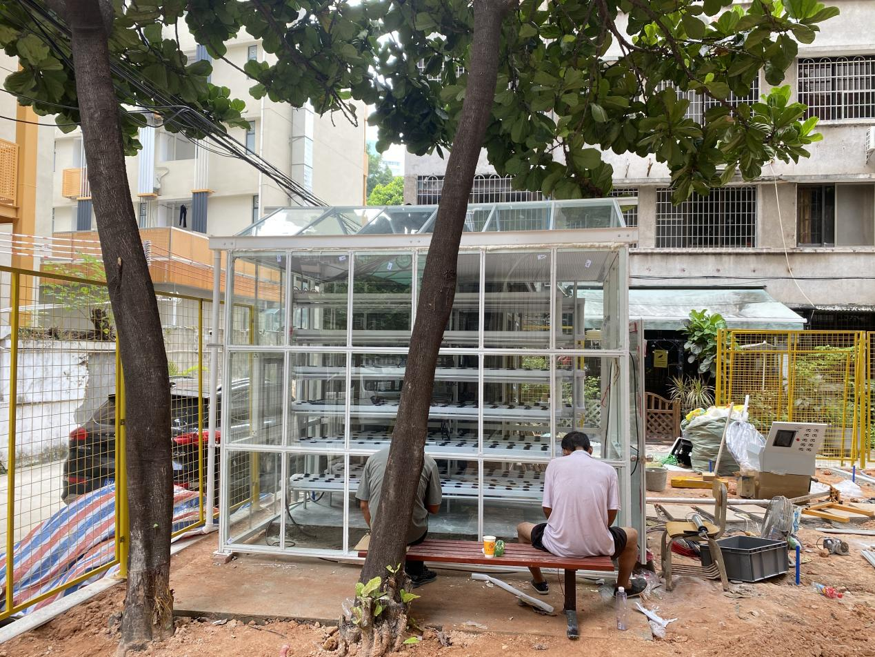 實施歷程:自2021年7月起,從第一臺設備進場到機柜裝調完畢,歷時兩個星期,設備涉及智能控制柜,降溫系統,溫度,濕度,光照傳感器,滴灌系統,以及光照補充設備實現控制或部分控制植物生長環境。