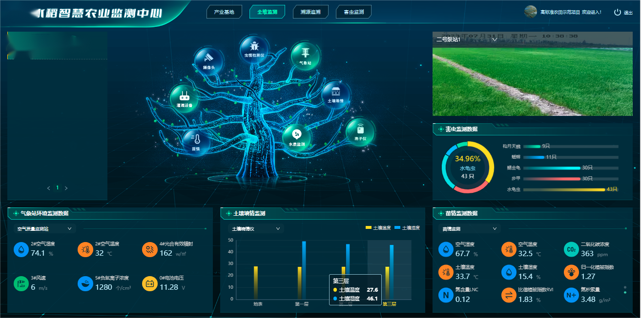 包括環境氣象監測、土壤墑情監測、蟲情孢子監測、苗情災情監測、太陽能殺蟲燈等