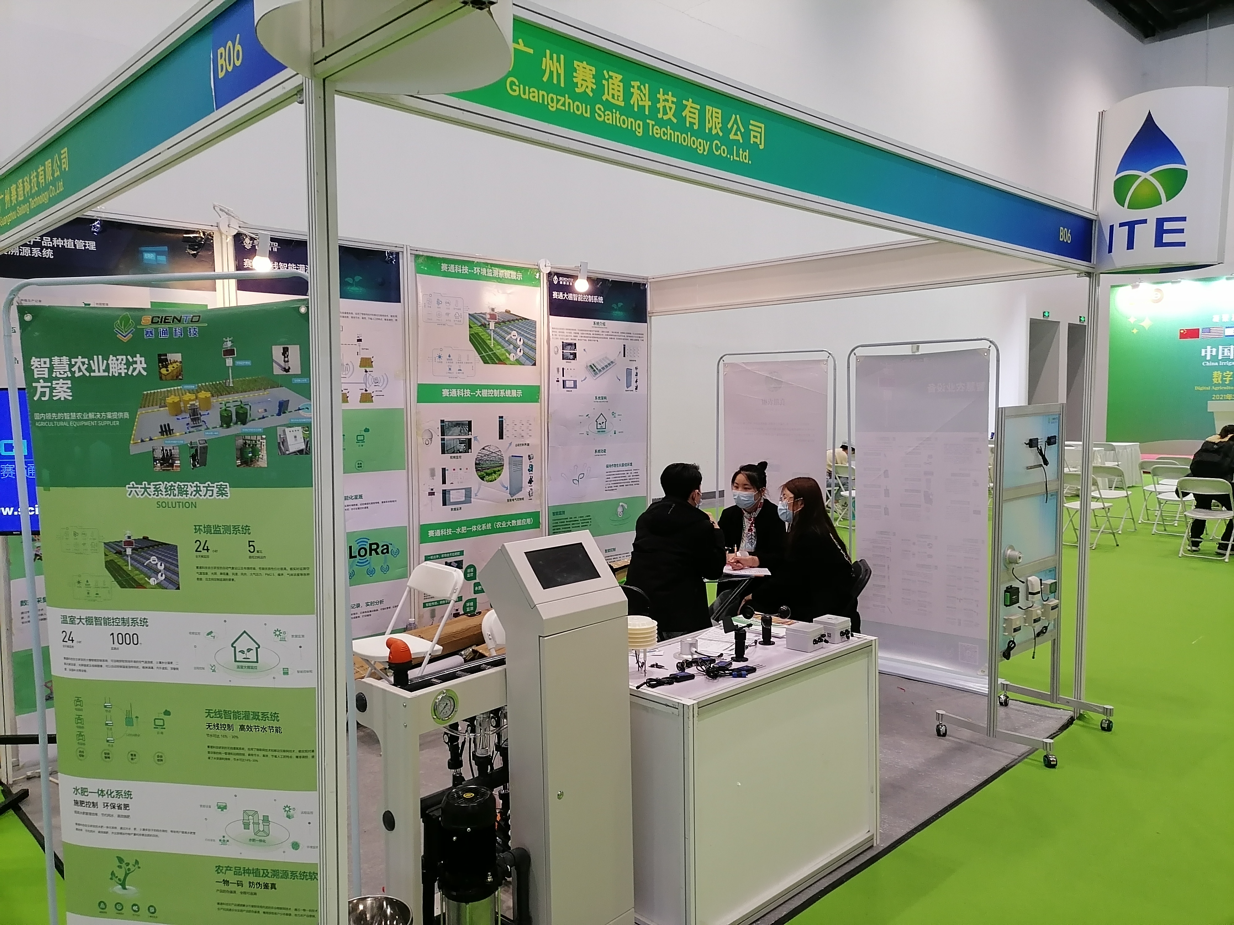 展會期間,我司展位重點展示了水肥一體機、管式土壤墑情傳感器、土壤酸堿度傳感器、大氣壓溫濕度傳感器、風速傳感器等智能農業設備。賽通科技的業務經理為前來咨詢的客戶提供了專業的解答。