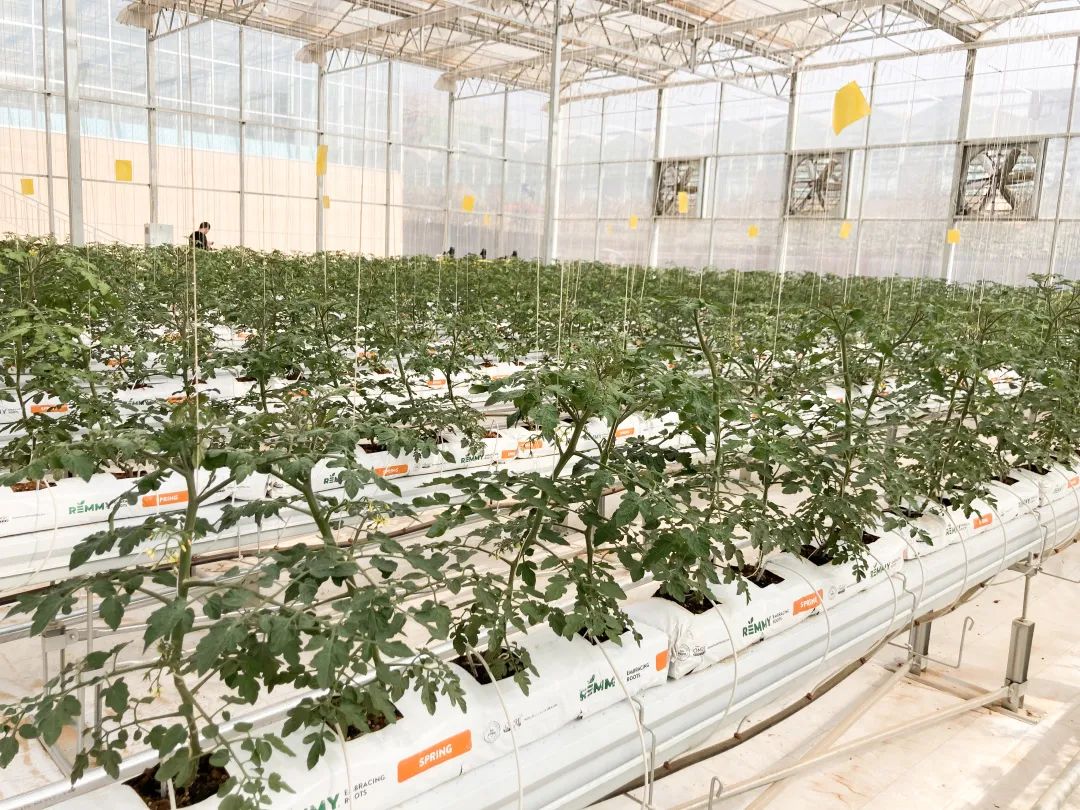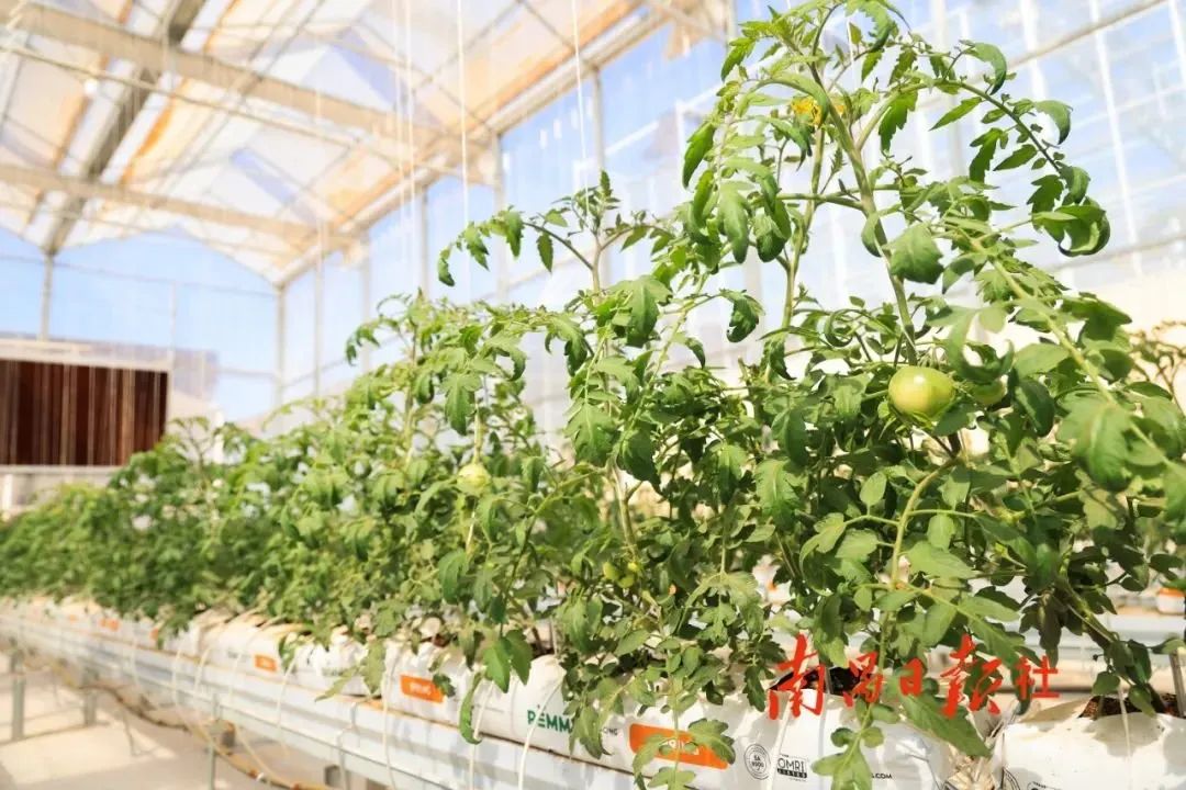 結合紅谷灘元宇宙·VR數字農業示范基地對6號植物工廠水果番茄的產能要求及觀光研學的空間需求,賽通科技在設計方案時選擇了目前國際主流智慧番茄栽培模式,包括賽通自主研發生產的智能水肥灌溉控制設備及高架栽培導流板、進口環保椰糠基質條和進口營養液滴箭等先進栽培系統設施。將空間美學融入溫室大棚設計,結合多品種水果番茄的色形美,6號植物工廠水果番茄王國將成為觀光采摘和研學教育最有吸引力的項目之一。