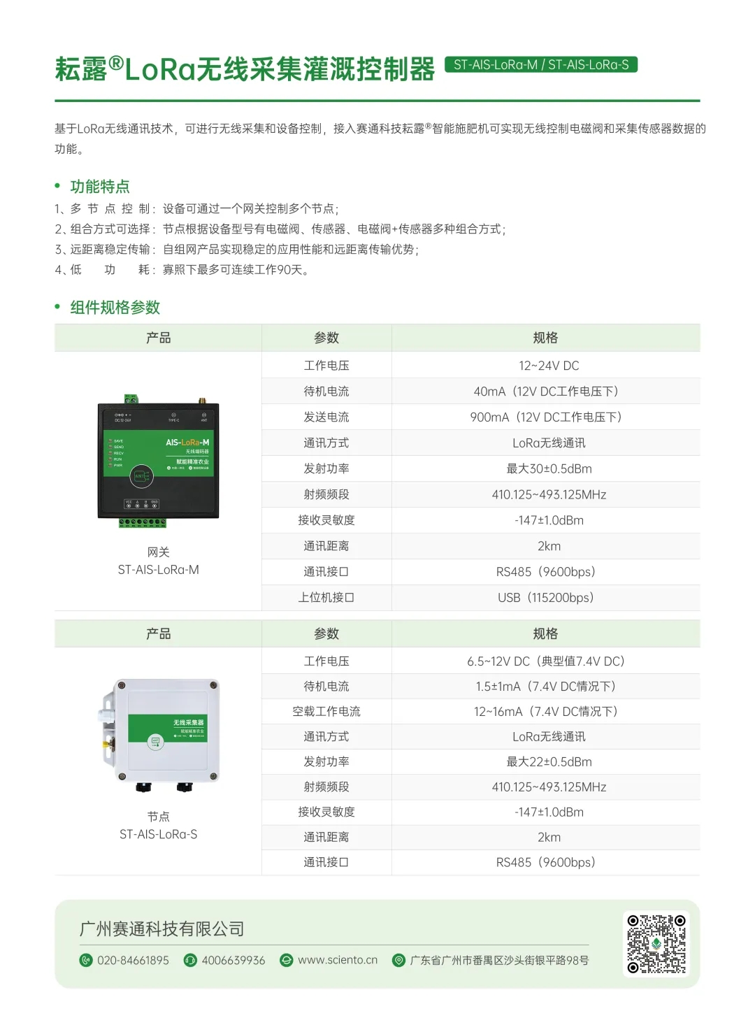 廣州賽通科技有限公司基于成熟的數字農業研發經驗和產品實踐經歷,以科技芯創新驅動水肥灌溉系列產品優化升級,自主研發大流量、強注肥能力、適用各種肥料的注入式智能施肥機;低功耗、長續航能力、通訊距離更遠的LoRa無線采集灌溉控制器……