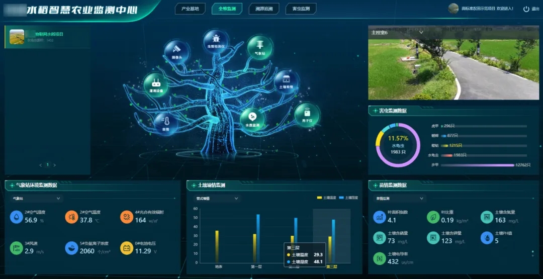 以農(nóng)業(yè)四情監(jiān)測(cè)、水稻田間智能灌溉監(jiān)測(cè)、水質(zhì)監(jiān)測(cè)等設(shè)備搭建物聯(lián)網(wǎng)智能控制系統(tǒng),與基地信息及耕作信息凝聚為高標(biāo)準(zhǔn)農(nóng)田建設(shè)“一張圖”,可視化大數(shù)據(jù)平臺(tái)實(shí)現(xiàn)了水稻“種管養(yǎng)”智能化、信息化、數(shù)字化,綠色生態(tài)發(fā)展與產(chǎn)能提升得到統(tǒng)籌協(xié)調(diào),高標(biāo)準(zhǔn)農(nóng)田建設(shè)質(zhì)量與水平不斷提升。