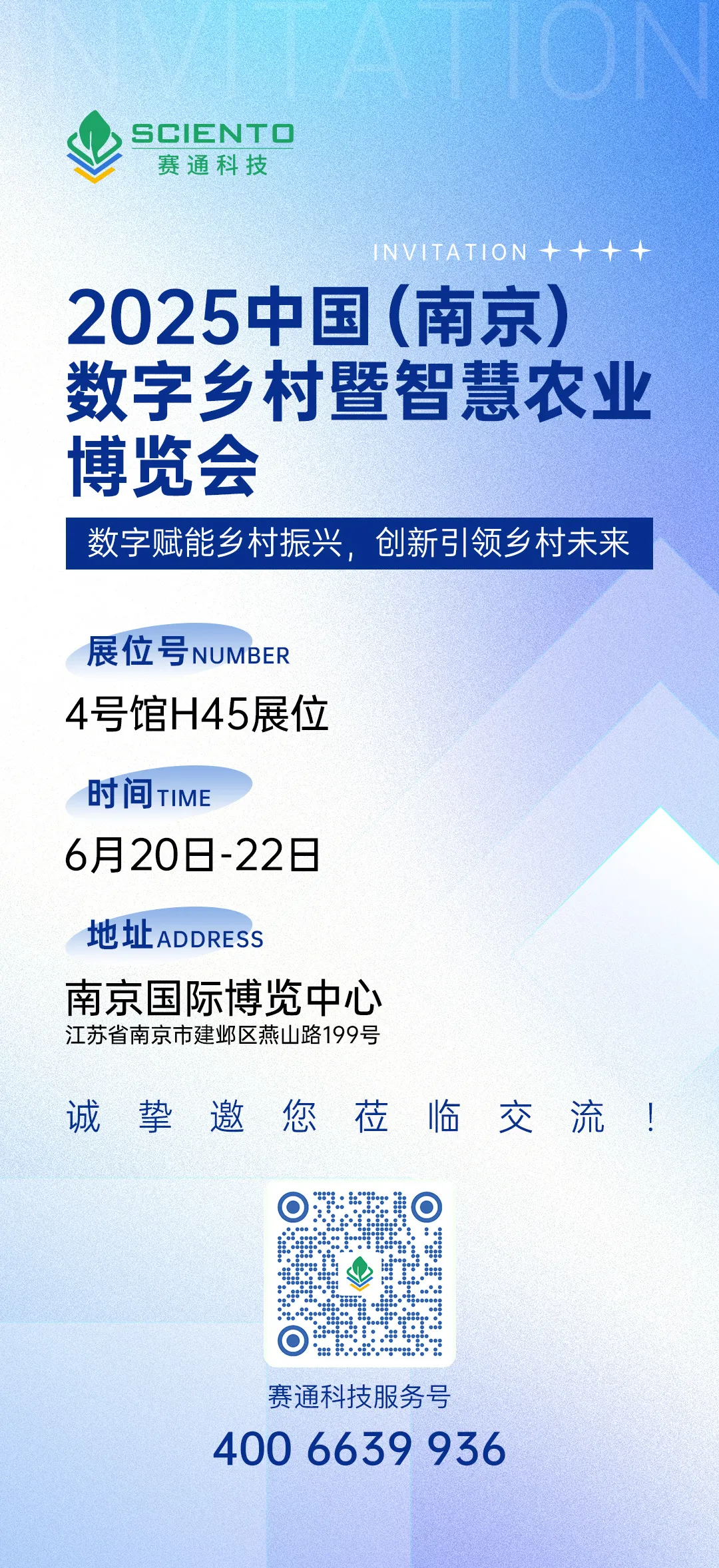6月20日-22日,2025中國(guó)(南京)數(shù)字鄉(xiāng)村博覽會(huì)暨第九屆中國(guó)(南京)國(guó)際智慧農(nóng)業(yè)博覽會(huì)將于南京國(guó)際博覽中心4號(hào)館盛大啟幕。廣州賽通科技有限公司將攜自主研發(fā)的優(yōu)勢(shì)產(chǎn)品亮相H45展位,誠(chéng)邀您蒞臨現(xiàn)場(chǎng),與我們共同探討科技賦能鄉(xiāng)村振興的創(chuàng)新路徑。