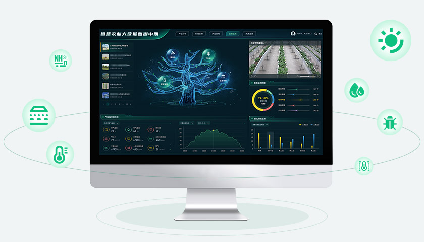 實(shí)時采集展示農(nóng)業(yè)生產(chǎn)現(xiàn)場的各種監(jiān)測數(shù)據(jù),包括土壤墑情、溫濕度、光照強(qiáng)度、病蟲害情況、水質(zhì)氨氮含量等,直觀展示農(nóng)業(yè)生產(chǎn)環(huán)境情況,為數(shù)字化管理提供精準(zhǔn)依據(jù)。